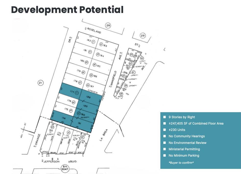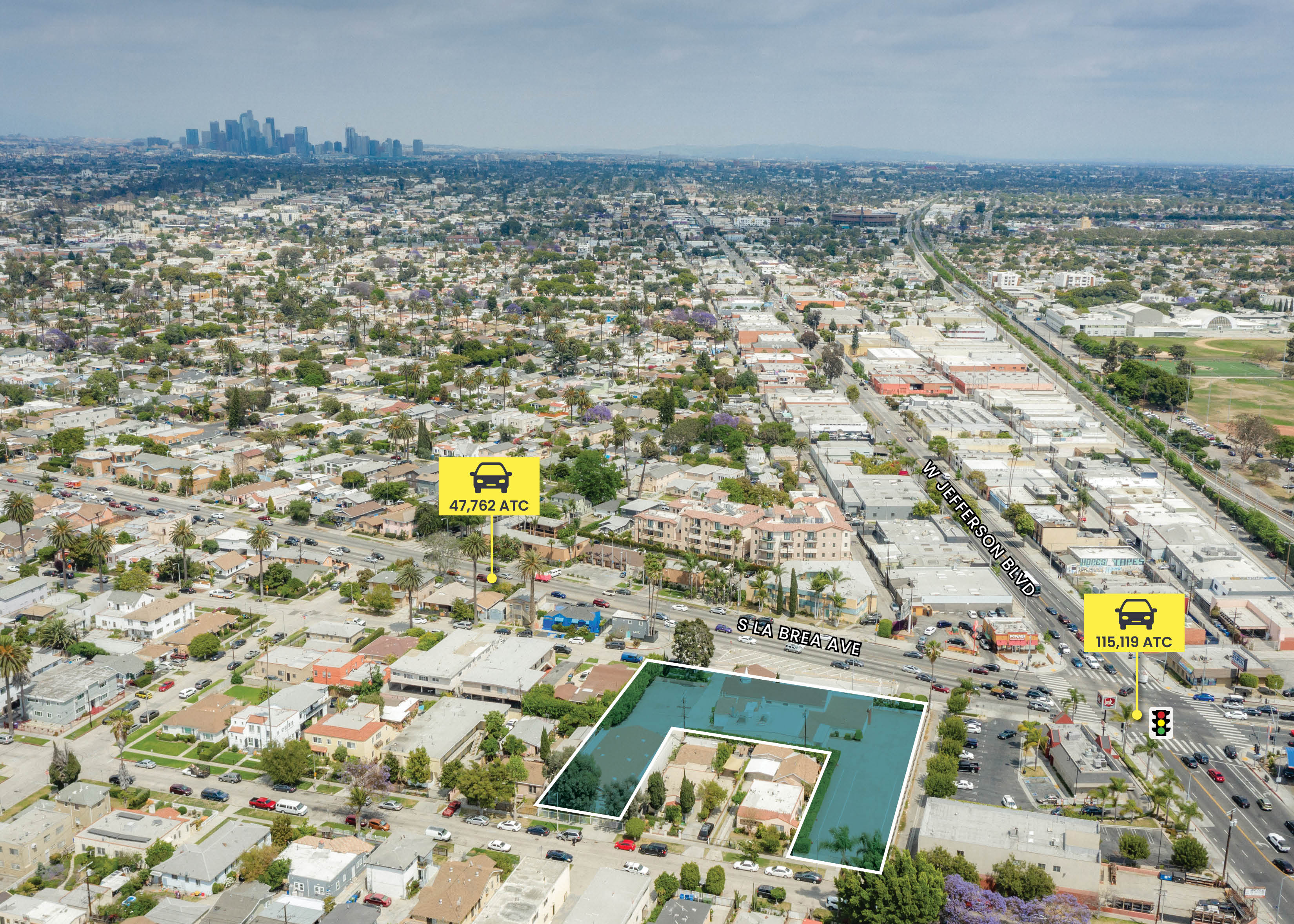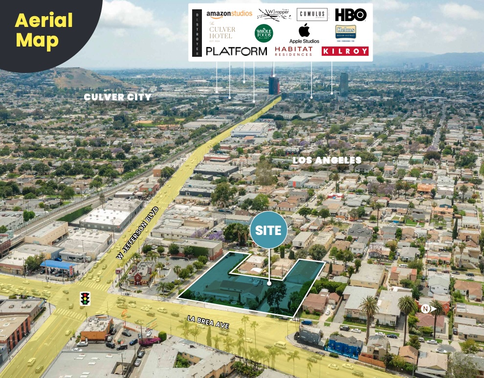 This is a rare opportunity to acquire approximately two parcels totaling ±40,000 SF of land adjacent to the prime intersection of La Brea Avenue and Jefferson Boulevard. The property is strategically positioned between Culver City, the Metro Expo Line, and West Adams, offering exceptional transit-oriented development potential. Current zoning allows for up to nine stories and approximately 230 residential units by right (buyer to verify). The site’s size and configuration also make it well-suited for alternative uses such as outdoor storage, EV charging or potential self-storage.The property benefits from strong demographics, high vehicle counts, excellent visibility, and significant new investment throughout the surrounding area. Just blocks away, Costco is partnering on its first mixed-use project in the United States, combining a ground-floor Costco with hundreds of residential units above, anticipated for completion in 2027. Historically, Costco developments have driven increased employment, vehicle traffic, retail demand, and long-term residential value—often referred to as the “Costco Effect.”